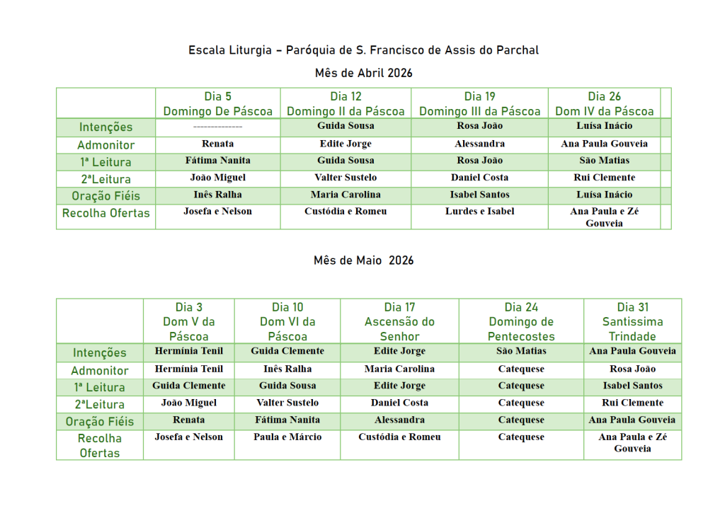 📌 A escala de leitores — com os horários e dias em que cada leitor está convocado.